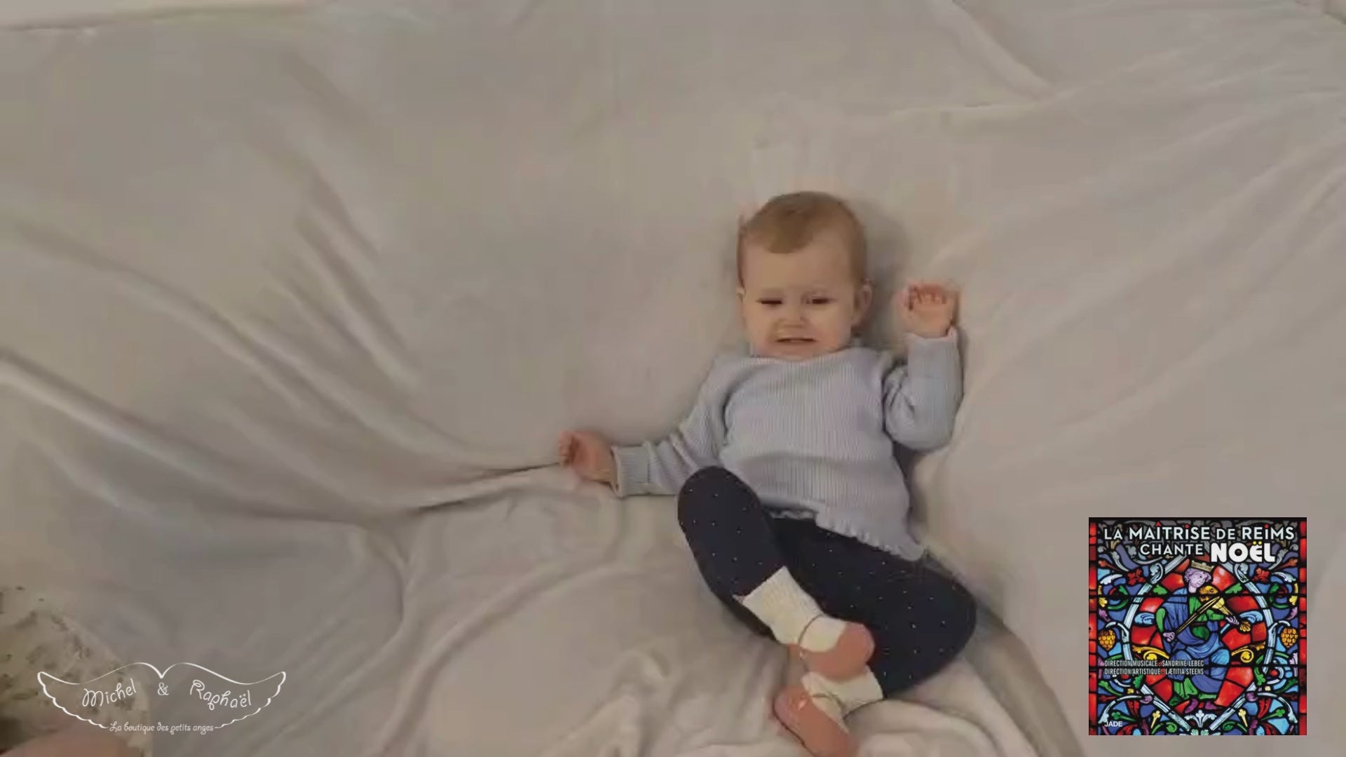 Un doudou unique, inspiré de l'ange au sourire de la cathédrale de Reims, qui berce votre enfant du chant "Dors ma colombe" interprété par les Maîtrisiens de la cathédrale".
